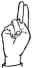 На ћирилици написано КОНСТАНТИН КОМНЕНОВИЋ састоји се из 20 слова [?]. Исписано ћириличном једноручном азбуком за глувонеме: